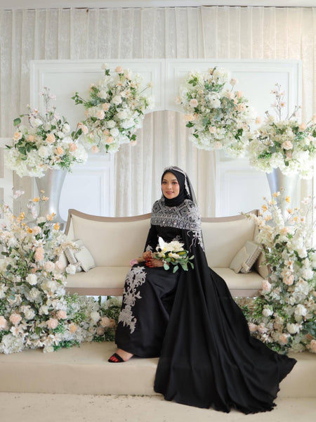Dare to be different with the MALEFICENT bridal package. This captivating black duchess A-line wedding dress is a bold choice for the modern bride who wants to stand out. Perfect for your wedding reception (Majlis Sanding), this stylish yet classy outfit will definitely catch everyone's attention.