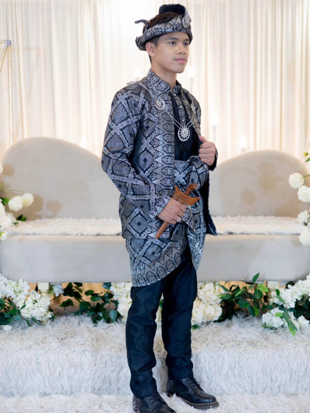 Dayang Senandung is perfect for couples who want a refined, elegant, and culturally authentic wedding look. The black and silver palette ensures a sophisticated and memorable entrance at your Baju Sanding reception.