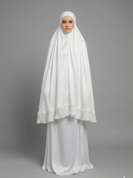 Telekung Premium – Telekung Ruby - Sutera Satin Jacquard Off White