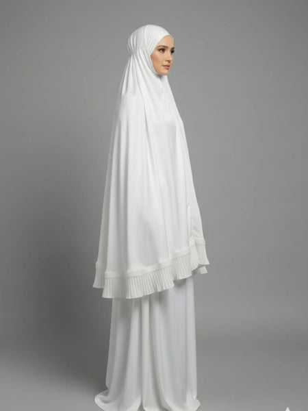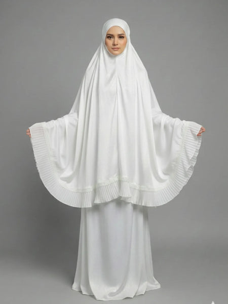 Telekung Ruby sangat sesuai untuk Muslimah yang menghargai material premium seperti Sutera Satin Jacquard dan perincian renda yang mempesona. Ia ideal untuk solat harian di rumah, masjid, mahupun ketika travel kerana sifatnya yang lightweight dan no-iron. Dengan aura kemewahan dan rona suci Off White, Telekung Ruby adalah pilihan yang sangat berprestij sebagai Hantaran Perkahwinan atau hadiah istimewa, melambangkan keanggunan dalam ibadah. Sesuai untuk semua wanita Muslimah yang mencari telekung solat selesa dengan keindahan lace work yang premium dan saiz universal.